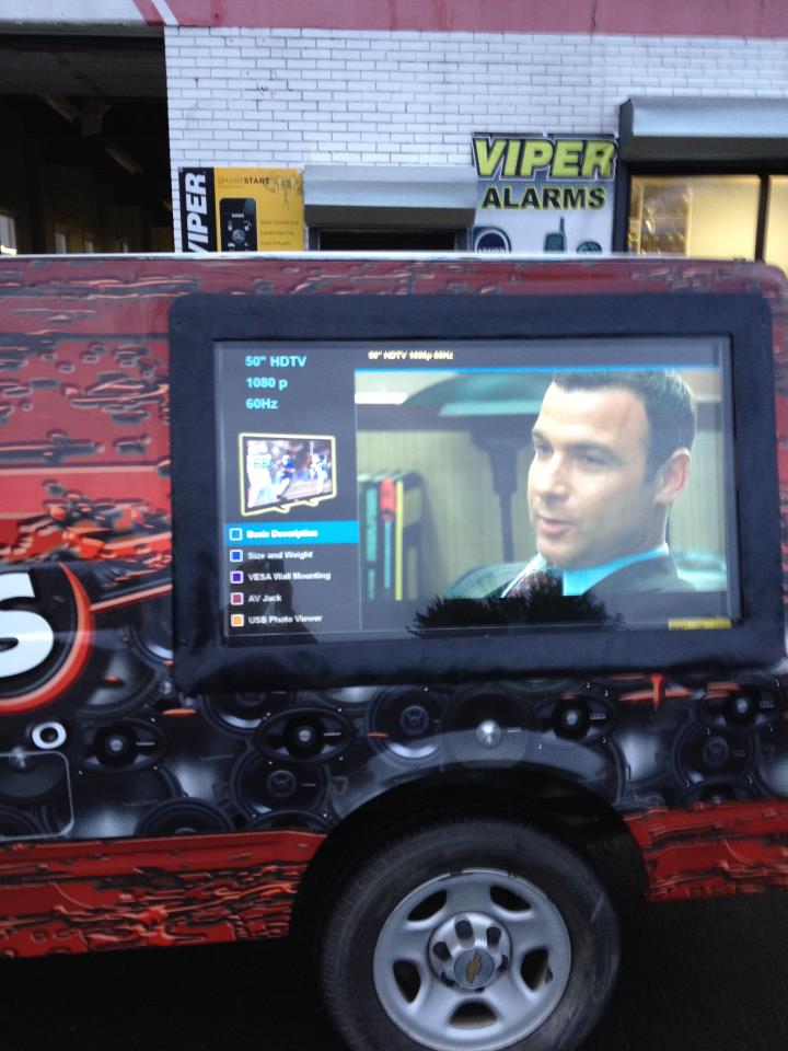 attention). The TV bezel was blended into the side of the van with expanding